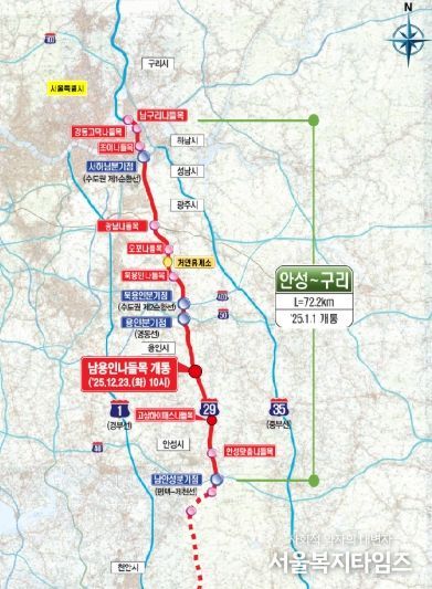 안성~용인~구리 구간(72.2㎞)은 1월 1일 개통됐다. 이 가운데 처인구 모현읍에서 원삼면까지 용인을 남북으로 관통하는 구간의 길이는 26㎞다. 포천~구리 구간(44.6㎞)은 지난 2017년 개통됐고, 안성~세종 구간(59.5㎞)은 2026년 말 개통 예정이다.