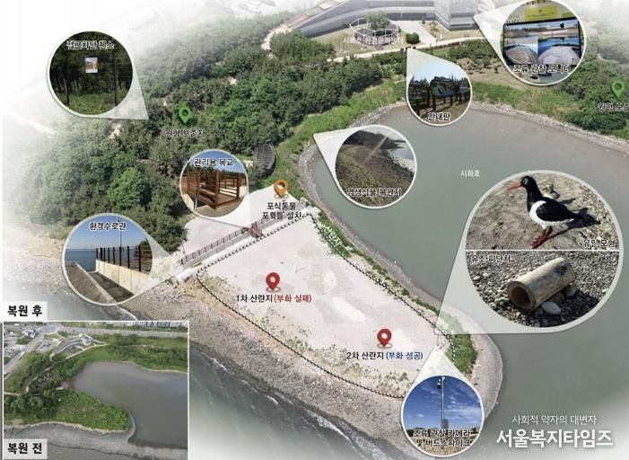 시흥시가 철새도래지 서식처 조성사업에 2년 연속 선정돼 추진한 시화MTV ‘검은머리물떼새 서식지 조성사업’은 2025년 제25회 자연환경대상 기후에너지환경부장관상을 수상하며 그 생태복원 역량을 인정받았다. 시는 (사)시화호지속가능파트너십과 협력해 이번 사례를 생태ㆍ환경교육 프로그램과 연계 발전시켜 나가고 있다.