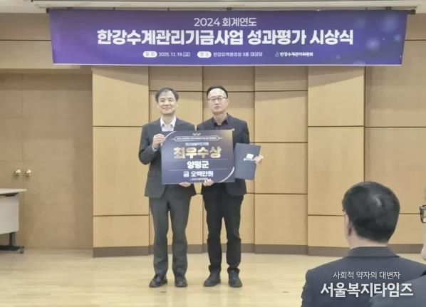 서울복지타임즈 이재연 기자 | 양평군은 지난 19일 한강유역환경청이 실시한 ‘2024년도 한강수계관리기금 성과평가’에서 주민지원사업 부문 최우수, 오염총량관리사업 부문 장려를 수상했다고 밝혔다.