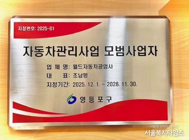 서울복지타임즈 이재연 기자 | 영등포구가 ‘자동차 관리사업 모범사업자’ 3곳을 신규 지정하고 인증 현판과 지정 증서를 전달했다고 밝혔다.