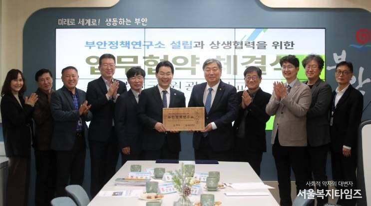 서울복지타임즈 이재연 기자 | 부안군은 24일 원광대학교와 함께 대학 내에 부안정책연구소 사무실을 설치하고 군정 주요 현안 해결과 중장기 정책 연구 협력을 위한 업무 협약(MOU)을 체결했다고 밝혔다.