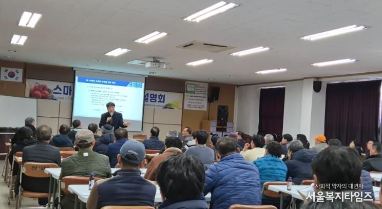 서울복지타임즈 이재연 기자 | 밀양시는 지난 7일 산내면 얼음골사과발전협의회 대강당에서 사과 재배 농업인을 대상으로 ‘미래형 사과과원 조성을 위한 설명회’를 개최했다.