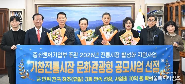 서울복지타임즈 이재연 기자 | 거창군은 거창전통시장이 중소벤처기업부 주관 ‘2026년 전통시장 및 상점가 활성화 지원사업’ 중 문화관광형시장 육성사업에 최종 선정됐다.