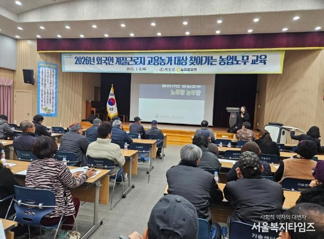 서울복지타임즈 이재연 기자 | 청도군은 지난 8일 농업기술센터에서 외국인 계절근로자 고용농가 대상 찾아가는 노무교육을 실시했다.