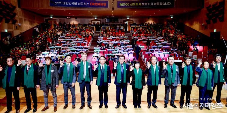 서울복지타임즈 이재연 기자 | 보령시는 13일 보령문화예술회관 대공연장에서 ‘바람과 햇빛, OK만세보령의 미래가 되다’를 주제로 시민 800여 명이 참석한 가운데 RE100 비전선포식 행사를 개최했다.