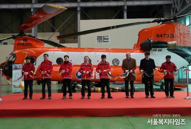 서울복지타임즈 이재연 기자 | 산림청은 산림항공본부에서 국내 최초 민수용 대형헬기 시누크 1대를 신규 도입하고 도입식을 개최했다고 23일 밝혔다.