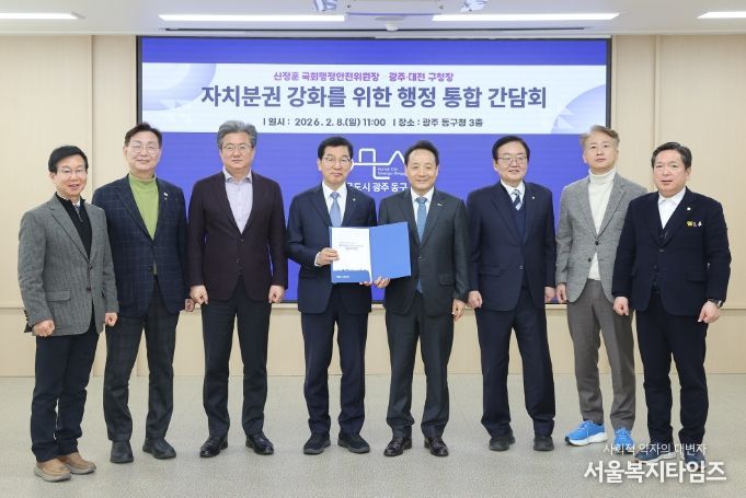 광주광역시구청장협의회는 8일 광주 동구청에서 대전광역시 중구청장·유성구청장과 함께 신정훈 국회 행정안전위원장과 간담회를 갖고, 광역 행정통합 추진 방향과 관련해 자치구의 자치권이 실질적으로 보장될 수 있도록 통합특별법에 반영해 줄 것을 건의했다고 밝혔다.