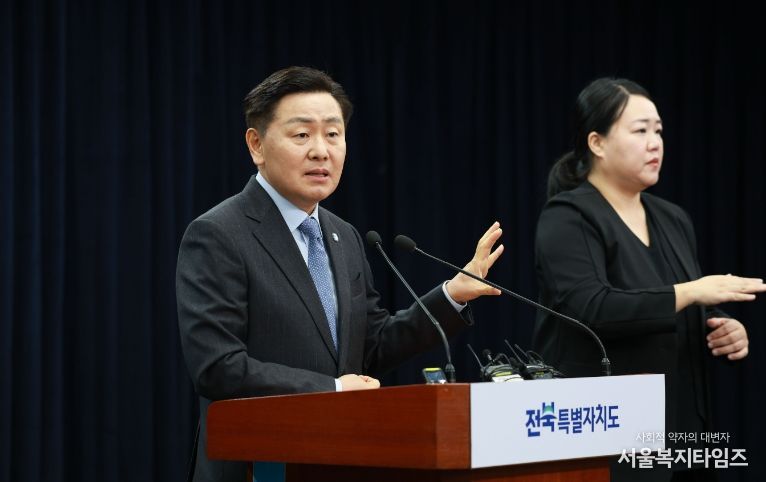 김관영 전북자치도지사는 9일 도청 브리핑룸에서 기자회견을 열고 “전북을 대한민국 AI로봇 실증·산업화 거점으로 육성하겠다”며 ‘AI로봇 산업 클러스터 조성계획’을 발표했다.