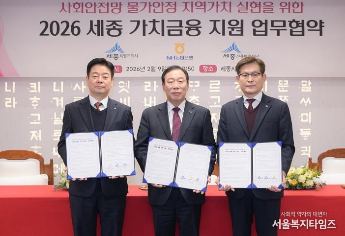 서울복지타임즈 이재연 기자 | 세종특별자치시가 9일 시청에서 농협은행, 세종신용보증재단과 ‘세종 가치 금융’ 소상공인 금융지원 업무협약을 체결했다.
