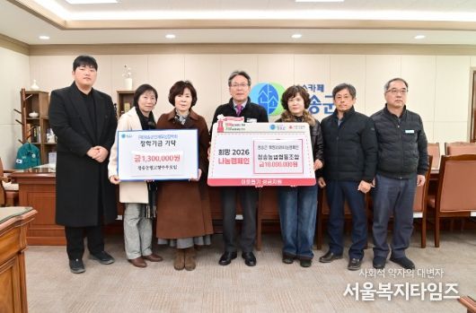 서울복지타임즈 이재연 기자 | 청송군은 지난 5일 청송농업협동조합과 청송농협 고향주부모임이 이웃돕기 성금과 장학금을 기탁하며 지역사회에 따뜻한 나눔을 전했다고 밝혔다.