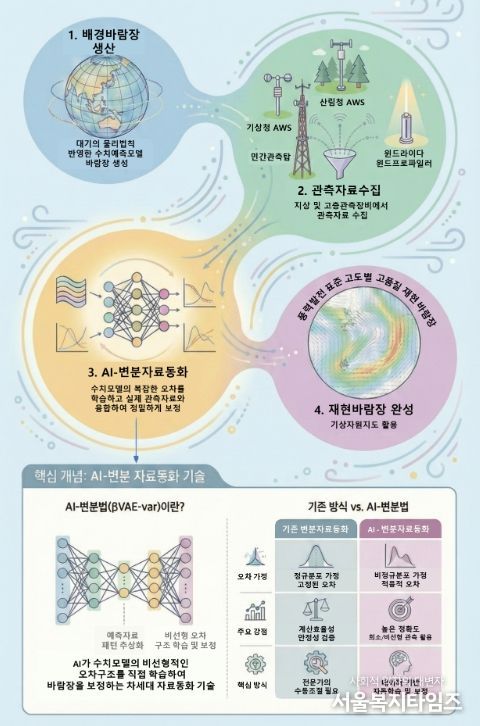 바람 분석정보는 기상청이 보유한 지상기상관측자료, 윈드라이다, 연직바람관측장비 등에서 수집한 자료뿐만 아니라 풍력발전 관측탑에서 측정한 자료를 추가로 이용하여 바람 재현 성능이 향상됐다. 이 과정에서 관측자료와 수치예보모델의 결과를 유기적으로 활용하는 인공지능(AI)-변분자료동화를 결합한 수치예보기술을 자체 개발했다.