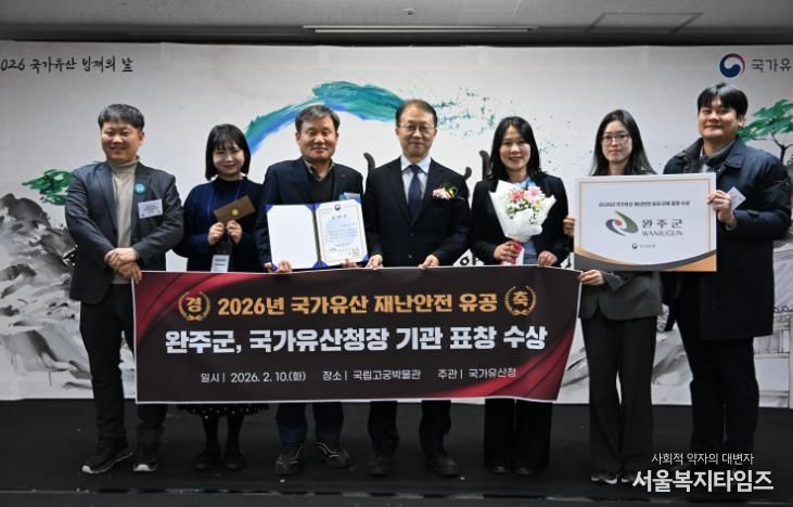 서울복지타임즈 이재연 기자 | 완주군이 10일 서울 국립고궁박물관에서 전국 시군 중 유일하게 ‘2026 국가유산 재난 안전 유공’ 국가유산청장 기관 표창을 수상했다.