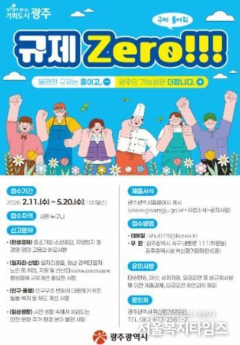 광주광역시는 ‘불합리한 규제 집중발굴, 규제 제로’를 목표로 11일부터 5월 20일까지 100일 동안 불합리한 규제 집중발굴 기간을 운영한다.