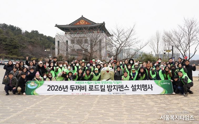 서울복지타임즈 이재연 기자 | 대구 수성구는 지난 10일 전국 최대 두꺼비 집단 산란지인 욱수동 망월지 일대에서 ‘두꺼비 로드킬 방지 펜스 설치’ 행사를 실시했다.