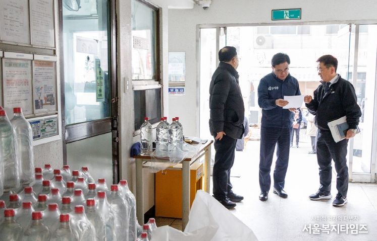 서울복지타임즈 이재연 기자 | 진교훈 서울 강서구청장이 11일 오후 단수로 불편을 겪고 있는 방화동의 한 아파트를 찾아 주민 피해 현황과 복구 진행 상황을 점검했다.