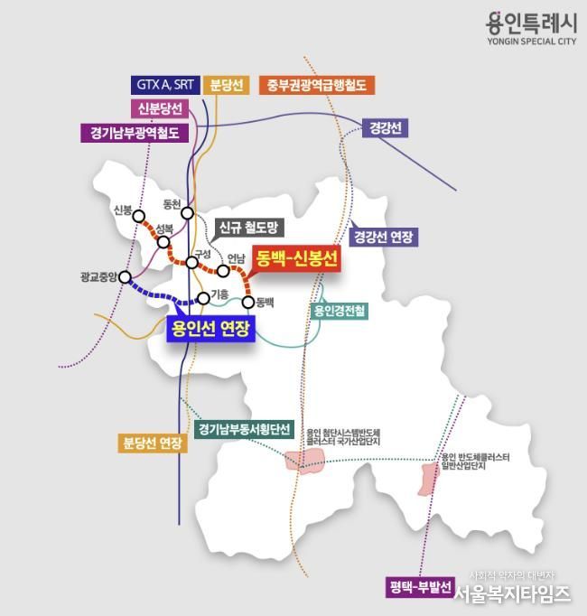 지난해 제2차 경기도 도시철도망 구축계획에 반영된 동백신봉선은 수지구 신봉동에서 성복역(신분당선), 구성역(GTX-A·수인분당선), 동백역(경전철) 등 주요 환승지를 잇는 14.7㎞의 노선이다. 신봉동과 성복동을 거쳐 반도체 소재ㆍ부품ㆍ장비(소부장) 기업과 인공지능(AI) 기업이 입주하고, 호텔ㆍ컨벤션 시설이 들어설 플랫폼시티와도 연결된다.