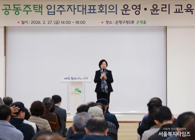 서울복지타임즈 이재연 기자 | 서울 은평구는 지난달 27일 공동주택 입주자대표회의 동별 대표자를 대상으로 ‘2026 공동주택 입주자대표회의 운영·윤리교육’을 실시했다고 밝혔다.