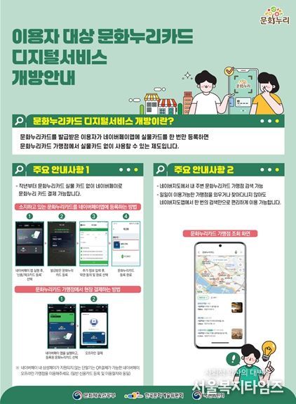 서울복지타임즈 이재연 기자 | 서울문화재단(대표이사 송형종)은 통합문화이용권 ‘서울문화누리카드’를 실물카드 없이도 사용할 수 있도록 네이버페이 연계 서비스를 도입했다고 밝혔다.