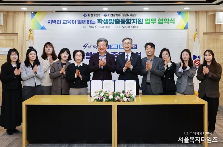 서울복지타임즈 이재연 기자 | 대전 유성구는 11일 유성구청 중회의실에서 대전서부교육지원청과 교육 취약 학생의 건강한 성장을 지원하기 위한 업무 협약을 체결했다.