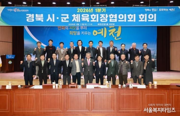 서울복지타임즈 이재연 기자 | 예천군은 11일 군청 5층 대강당에서 열린 ‘2026년도 1분기 경북 시군 체육회장협의회 회의’에서 제64회 경상북도민체육대회 준비 상황을 공유했다.