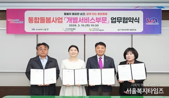 서울복지타임즈 이재연 기자 | 부산 남구는 오는 3월 27일 ‘의료·요양 등 통합돌봄지원사업’ 시행을 앞두고, 민관 협력을 통한 통합 돌봄 서비스 제공 체계를 마련하고 있다고 밝혔다.