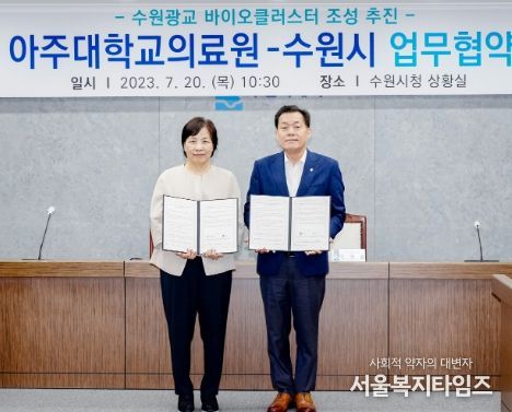 서울복지타임즈 이득형 기자 | 수원시와 아주대학교의료원이 ‘수원광교 바이오클러스터’ 조성과 보건의료 R&D생태계 활성화를 위해 적극적으로 협력하기로 했다.