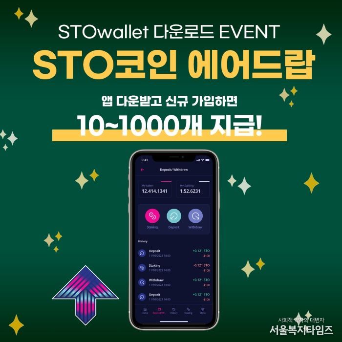 현재 '100%당첨 STO코인 무료지급 이벤트'를 진행 중에 있으며, 이벤트 참여자 모두에게 STO코인 10~1000개를 랜덤으로 지급할 계획이다. 또한 참여방법은 '한국증권형토큰협회' 홈페이지를 통해 이벤트 페이지로 접속해 신청하면 되고, 이벤트는 STO가격이 0.1달러에 도달할 때까지 한정적으로 진행할 예정이다.