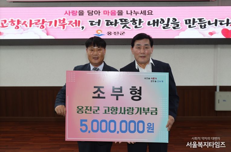 평소 옹진군에 많은 관심을 갖고 있는 것으로 알려진 조부형 대표는 지난 2024년에 이어 2025년도에도 고향사랑기부금 500만원을 전달하며, 어김없는 옹진 사랑을 보여주고 있다.