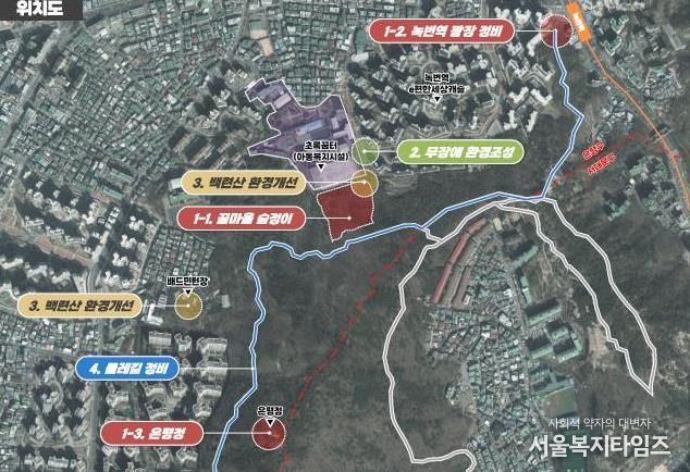 ‘백련산 꿈마을 숲정이 조성사업’은 백련근린공원의 자연 자원인 단풍나무 숲과 암석 지대 등을 활용한 도시 숲 체험형 힐링 공간을 조성하는 사업이다. 서울특별시 꿈나무마을 초록꿈터 뒤 백련근린공원 일대로 대상 면적은 약 1만㎡이다.