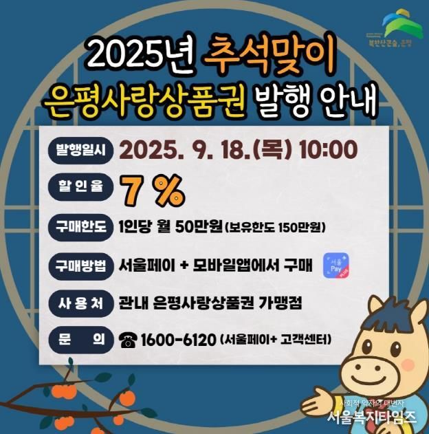 서울복지타임즈 이재연 기자 | 서울 은평구는 다가오는 추석을 맞아 오는 18일 10시부터 총 90억 원 규모의 ‘은평사랑상품권’을 발행한다고 밝혔다.