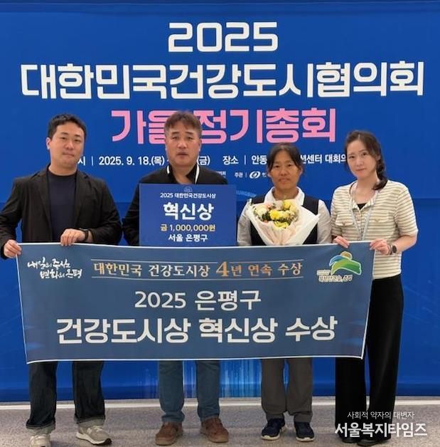 서울복지타임즈 이재연 기자 | 서울 은평구는 지난 18일 안동에서 열린 ‘2025 제10회 대한민국 건강도시상 공모전’에서 혁신상을 받았다고 밝혔다.