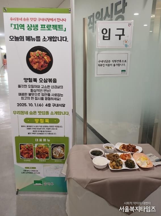 이번 프로젝트는 알려지지 않은 관내 식당의 대표 음식을 구청 구내식당에서 직원들이 직접 맛보고 입소문을 내도록 하는 사업으로, 소상공인과의 ‘상생’과 지역 상권 활성화를 위해 기획됐다.