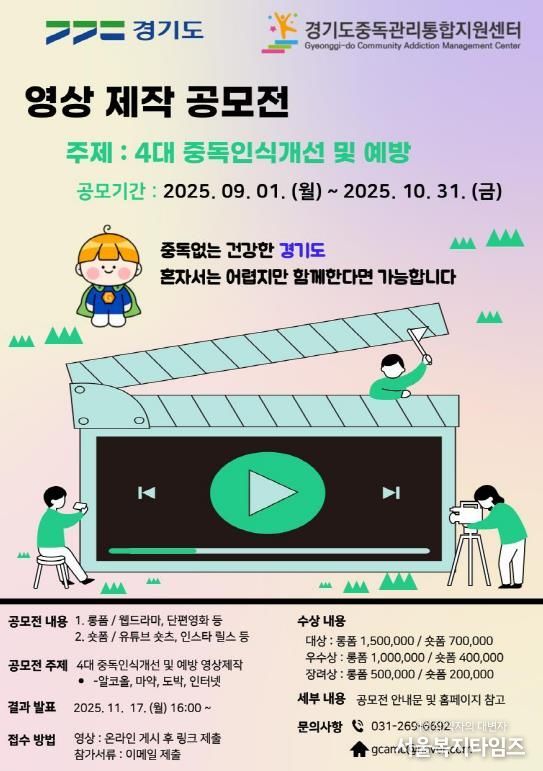 서울복지타임즈 이재연 기자 | 경기도와 경기도중독관리통합지원센터가 ‘2025년 중독예방 영상 공모전’을 개최한다. 이번 공모전은 전 도민을 대상으로 알코올, 마약, 도박, 인터넷 4대 중독에 대한 위험성과 경각심을 높이고 예방 문화를 확산하기 위해 마련됐다.