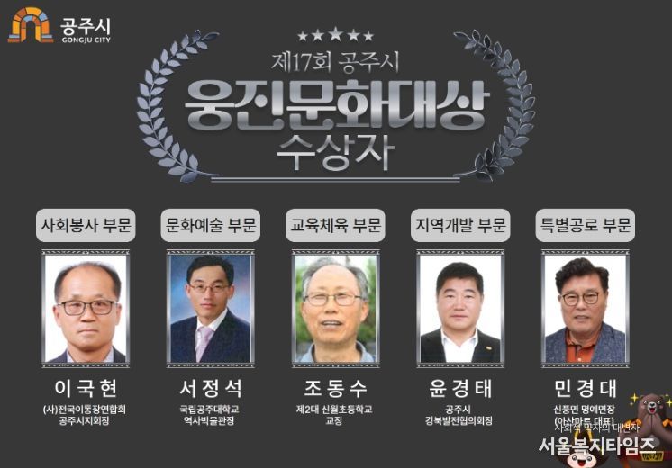 서울복지타임즈 이재연 기자 | 공주시는 제17회 웅진문화대상 수상자를 최종 선정했다고 13일 밝혔다.