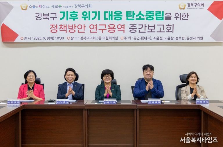 서울복지타임즈 이재연 기자 | 강북구의회 의원연구단체인 ‘강북구 기후위기 대응 탄소중립을 위한 연구회’ (대표의원 유인애)는 지난 9월 9일 의회 3층 의원회의실에서 중간보고회를 열었다.