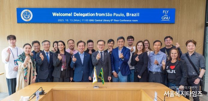 서울복지타임즈 이재연 기자 | 경상국립대학교는 브라질 상파울루시 대표단이 10월 13일 오전 경상국립대학교를 내방하여 권진회 총장을 예방하고 우주항공, 문화콘텐츠, 미디어 분야의 협력 방안을 논의했다고 밝혔다.