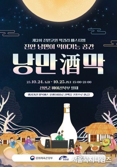 서울복지타임즈 이재연 기자 | ‘제2회 진안고원 막걸리 페스티벌 낭만酒막(주막)’이 오는 10월 24일부터 25일까지 마이산 북부 일대에서 열린다.