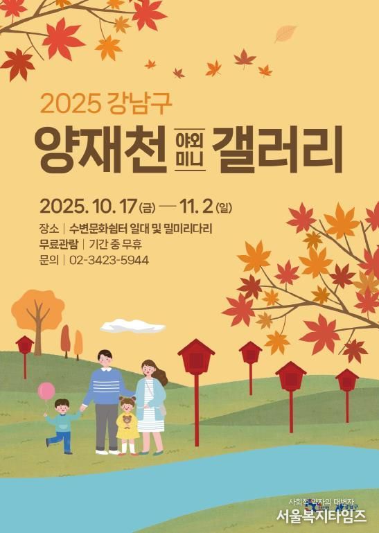 전시 주제는 ‘일상 속 예술관’으로, 예술이 전시장을 벗어나 주민의 생활 공간에 들어섰다는 메시지를 전한다. 특히, 가을빛으로 물든 양재천 풍광과 어우러진 미니 갤러리는 걷는 길 곳곳에서 소소한 예술의 즐거움을 선사하며, 자연과 문화가 어우러진 색다른 전시 경험을 제공한다.
