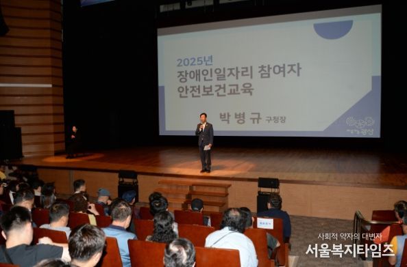 서울복지타임즈 이재연 기자 | 광주 광산구가 15일 광산문화예술회관 1층에서 2025년 장애인일자리사업 참여자 산업안전보건교육을 진행했다.