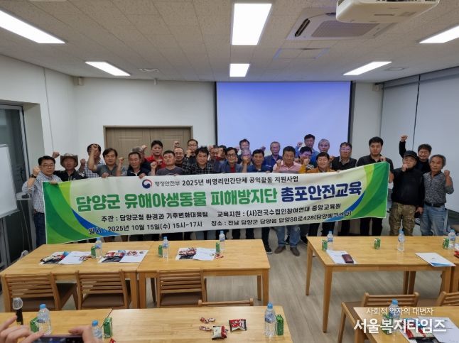 서울복지타임즈 이재연 기자 | 담양군은 지난 15일 에코교육관에서 유해야생동물 기동포획단을 대상으로 포획활동 시 준수사항과 총기사고 예방 등을 위한 안전교육을 진행했다.