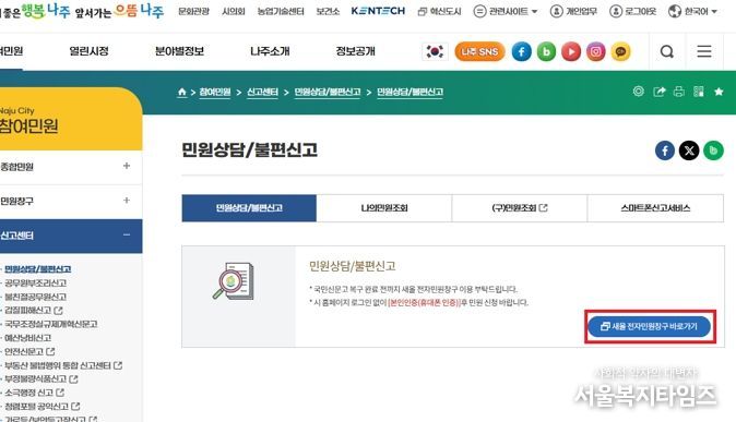 서울복지타임즈 이재연 기자 | 전라남도 나주시가 국민신문고 서비스 중단으로 인한 시민 불편을 최소화하기 위해 ‘새올 전자민원창구’를 임시 운영한다.