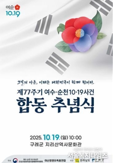 서울복지타임즈 이재연 기자 | 전남 구례군은 여순사건의 역사적 의미를 되새기고 희생자와 유족들을 위로하기 위한‘여순사건 제77주기 정부주최 합동추념식’이 오는 19일 구례군 지리산역사문화관에서 개최된다고 밝혔다.