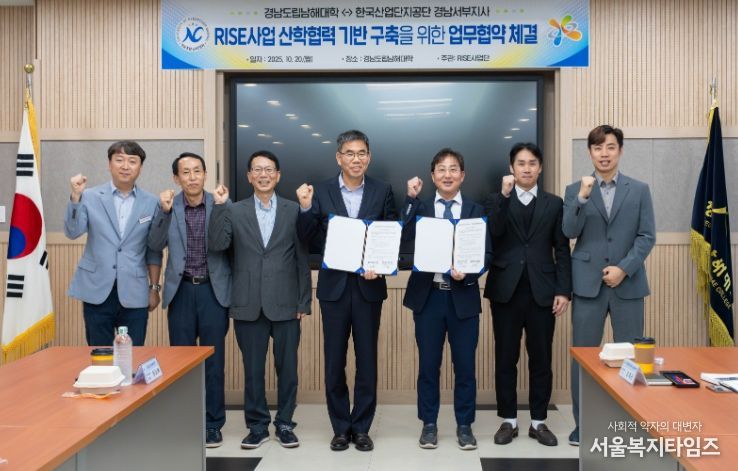 서울복지타임즈 이재연 기자 | 경남도립남해대학(총장 노영식)은 20일 오후 2시 교내 혁신학습지원실에서 한국산업단지공단 경남서부지사와 ‘경남 지역혁신중심 대학지원체계(RISE) 사업’ 추진을 위한 업무협약을 체결했다고 밝혔다.