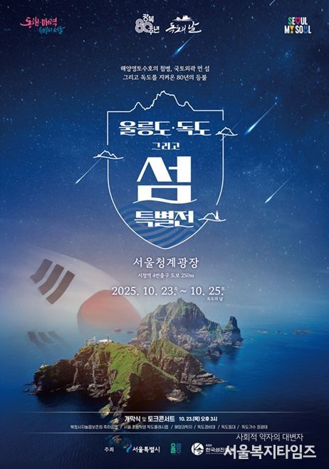 서울복지타임즈 이재연 기자 | 서울시는 광복 80주년과 독도의 날(10월 25일)을 기념하여 10월 23일부터 25일까지 3일간 청계광장에서 '울릉도·독도 그리고 섬 특별전'을 개최한다. 이번 행사는 서울시, 울릉군, 한국섬진흥원 공동 주최 행사로, 대한민국 영토로서 독도의 중요성과 가치를 알리기 위해 마련됐다.