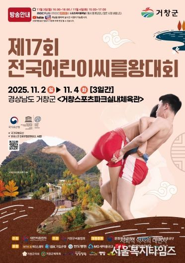 거창군은 대한씨름협회(회장 이준희)가 주최하고 거창군씨름협회(회장 박진영)가 주관하는 ‘대통령배 2025 전국씨름왕선발대회’와 ‘제17회 전국어린이씨름왕대회’를 오는 29일부터 11월 4일까지 7일간 거창스포츠파크 실내체육관에서 개최한다고 밝혔다.