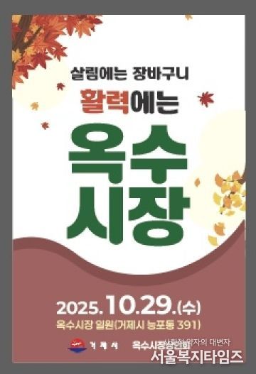 서울복지타임즈 이재연 기자 | 거제시는 오는 29일 옥수시장에서 전통시장 활성화와 지역경제 회복을 위해 다양한 이벤트와 공연 행사를 개최한다.
