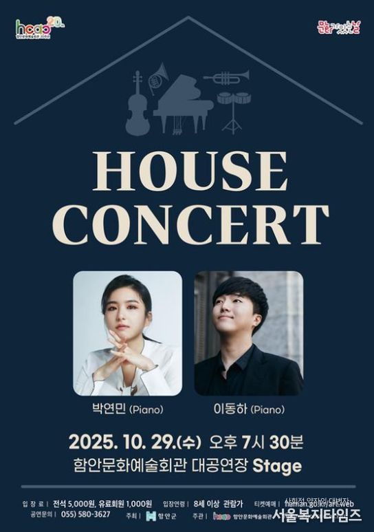 서울복지타임즈 이재연 기자 | 함안군은 오는 10월 29일 오후 7시 30분, 함안문화예술회관 대공연장에서 ‘문화가 있는 날’ 특별기획 공연인 10월 하우스콘서트를 개최한다고 밝혔다.