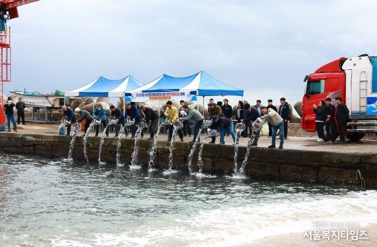서울복지타임즈 이재연 기자 | 울진군은 10월 23일 울진읍 양정항에서‘2025년 수산종자매입방류(강도다리) 행사’를 개최하고 강도다리 치어 24만 마리를 방류했다.