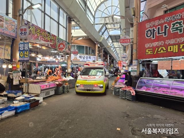 서울복지타임즈 이재연 기자 | 목포소방서는 28일 목포 동부시장에서 화재, 구조, 구급 등 각종 긴급상황 발생 시 골든타임을 확보하기 위한‘소방차 길터주기’와‘올바른 119구급차 이용문화 확산’캠페인을 펼쳤다.