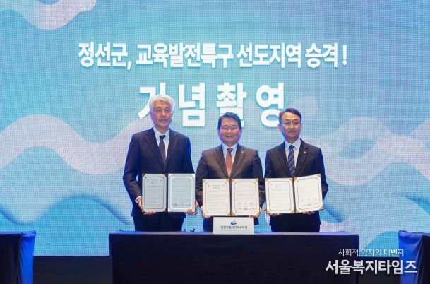 서울복지타임즈 이재연 기자 | 강원특별자치도교육청은 정선군청, 정선교육지원청과 10월 30일 정선 하이원팰리스호텔에서 ‘정선 더나은교육지구 연장지정 업무협약’을 체결했다.